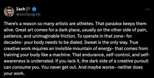 There’s something that I love so much about paradox—when something shouldn’t be but is. When a process works counter to our expectations but still manages to yield amazing results. One paradox that I’ve been obsessed with lately is the paradox of the artist/athlete. Many people think you’re either one or the other. But this is a fallacy.